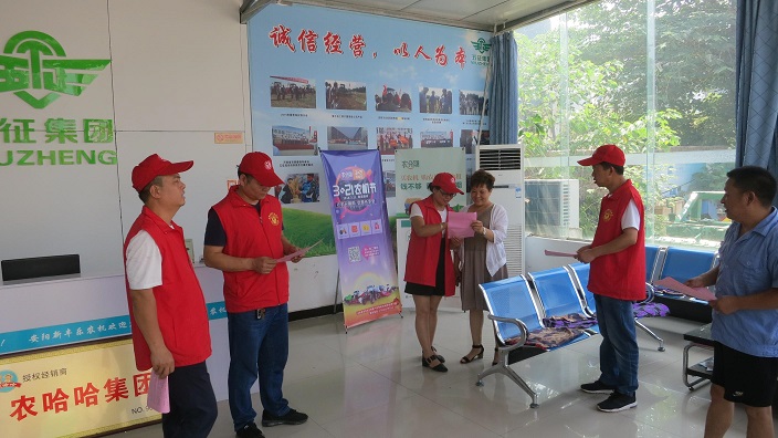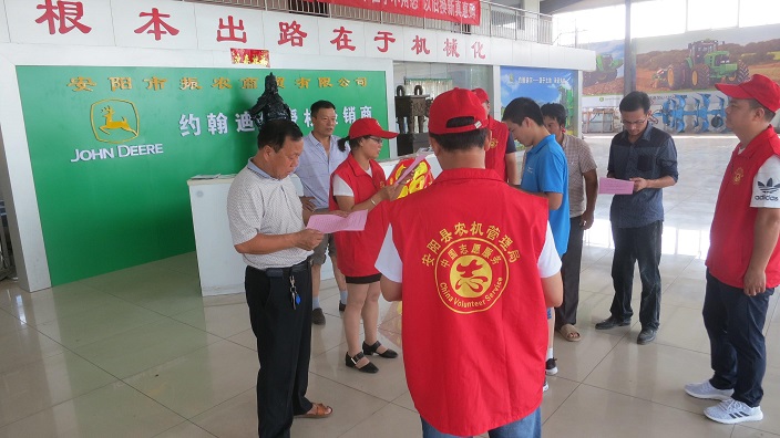 为营造良好的市场环境,在全社会打造诚信经营、诚信做人的环境和氛围,6月26日,安阳县农机管理局志愿者在汇丰农机公司和新丰乐农机公司开展了诚信建设专题宣传活动。 活动现场发放诚信经营宣传页80余份,对经销企业进行诚信经营宣传引导活动,并向各经销企业提出要坚持谁销售、谁服务、谁负责的原则,按照农机生产企业进行相应的机具售后服务,不折不扣地兑现服务承诺。诚实守信、遏制假冒伪劣、售后真诚热情。 通过这种面对面、零距离的宣传方式,加深了农机公司对诚信经营相关法律、法规的认知和理解,进一步提高了农机经营者守法经营的自觉性,为营造全民诚信的消费环境提供了有力保障。(韩素清)